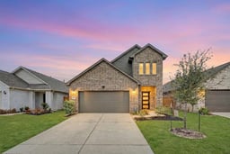 Stunning two-story home in the highly sought-after Marvida master-planned community! This 4-bedroom, 2.5-bath Energy Star® qualified home features an open-concept layout ideal for everyday living and entertaining. The kitchen offers granite countertops, 42-inch upper cabinets, soft-close cabinets, and a spacious island that opens to the family room with a cozy gas log fireplace. Luxury vinyl plank flooring adds style and durability. The primary suite downstairs includes double sinks, a separate shower, and a relaxing garden tub. Upstairs features a game room and dedicated media room—perfect for movie nights. An elegant wrought iron staircase makes a striking first impression. Enjoy resort-style amenities including a beautiful community center, pool, fitness center, parks, and easy access to TX-99, shopping, dining, and entertainment.